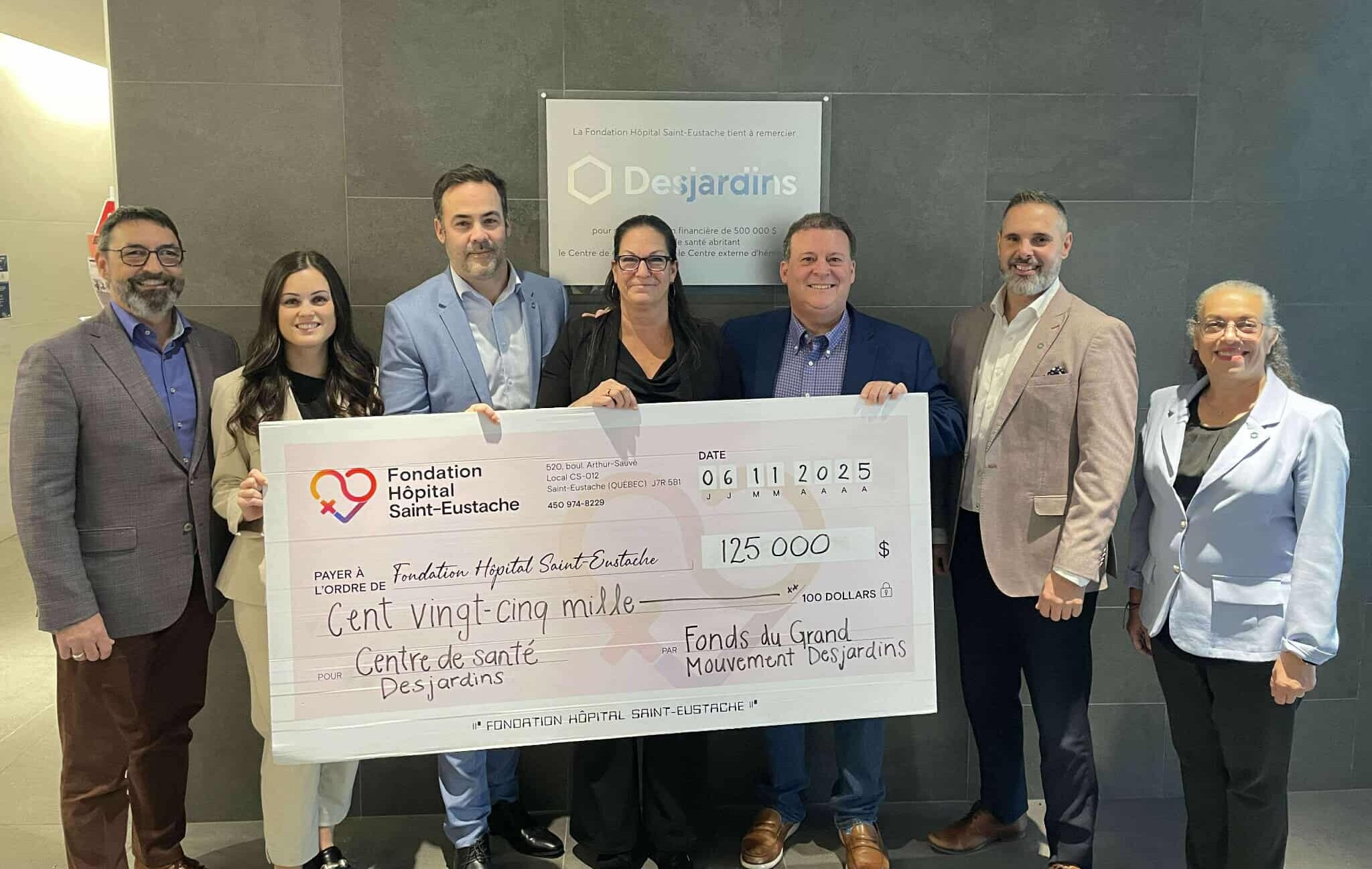 La Fondation Hôpital Saint-Eustache est fière d’annoncer la réception du dernier versement de 125 000 $ de la part du Fonds du Grand Mouvement Desjardins, une contribution qui s’inscrit dans l’engagement total de 500 000 $ pris lors de l’inauguration du Centre de santé Desjardins le 9 décembre 2019.