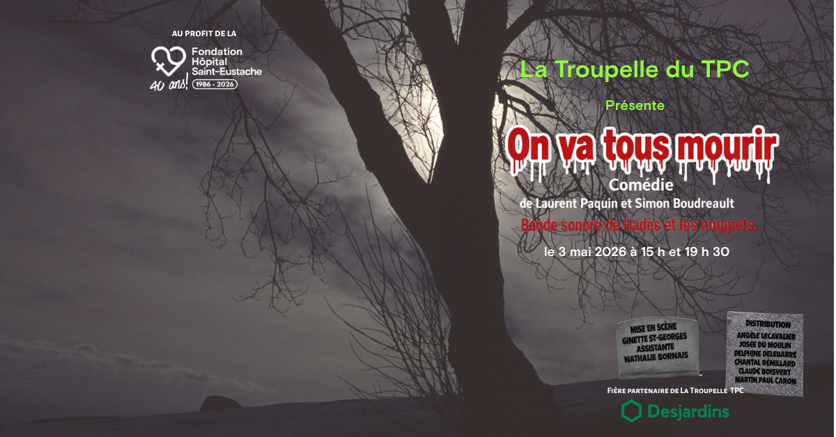 Looking for a hilarious local cultural outing? La Troupelle du TPC is back on stage with a bold play that promises to keep you laughing from beginning to end (or until the very end!). The play “On va tous mourir” (We’re All Going to Die), presented by Saint-Eustache’s own Troupelle du TPC, is a cultural, community-driven, and humorous event. Written by Laurent Paquin and Simon Boudreault, this comedy dissects the theme of death through twenty sketches, each more wild than the last.