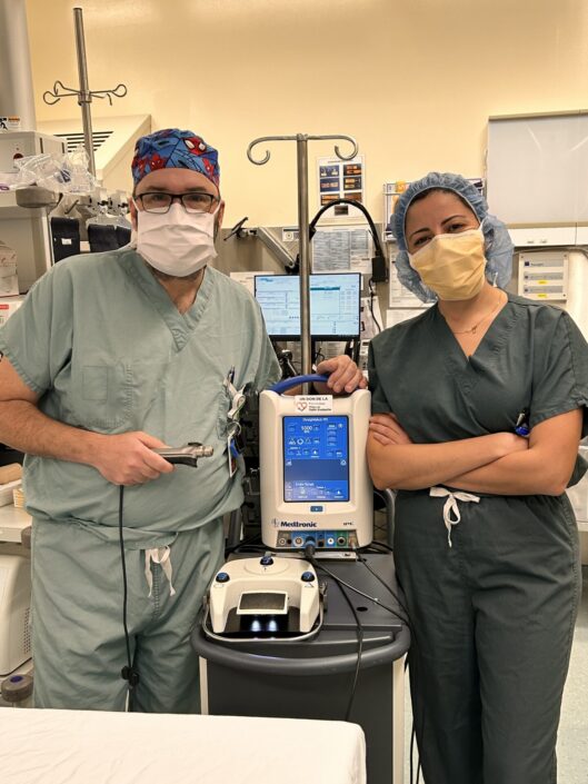 Sur la photo, nous voyons Dre Nathalie Gabra, chirurgienne ORL et Sébastien Lavoie, infirmier chef plastie et ORL, qui sont fiers d’avoir reçu cet outil qui fait une réelle différence dans leur pratique quotidienne.